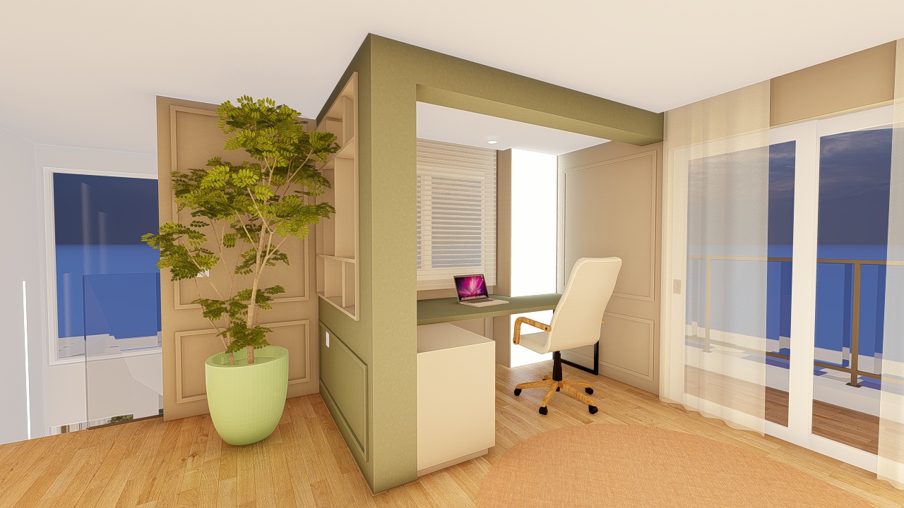 Outro ponto importante do projeto é a criação de dois espaços exclusivos e personalizados. O grande destaque deste projeto é a “man cave”, um espaço pensado para momentos de lazer e entretenimento. Com uma temática automobilística marcante, o ambiente conta com um simulador de corrida, mobiliário elegante e iluminação pontual que valoriza as peças decorativas. O segundo será um atelie, com uma proposta mais moderna e acolhedora, atendendo às suas necessidades com conforto e estilo.