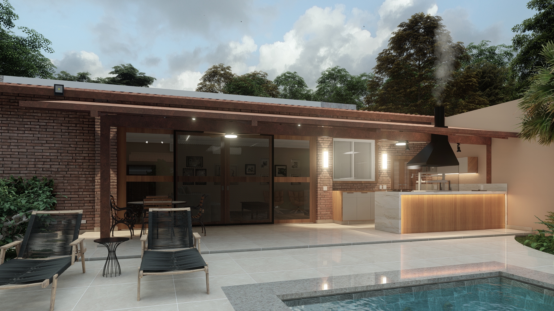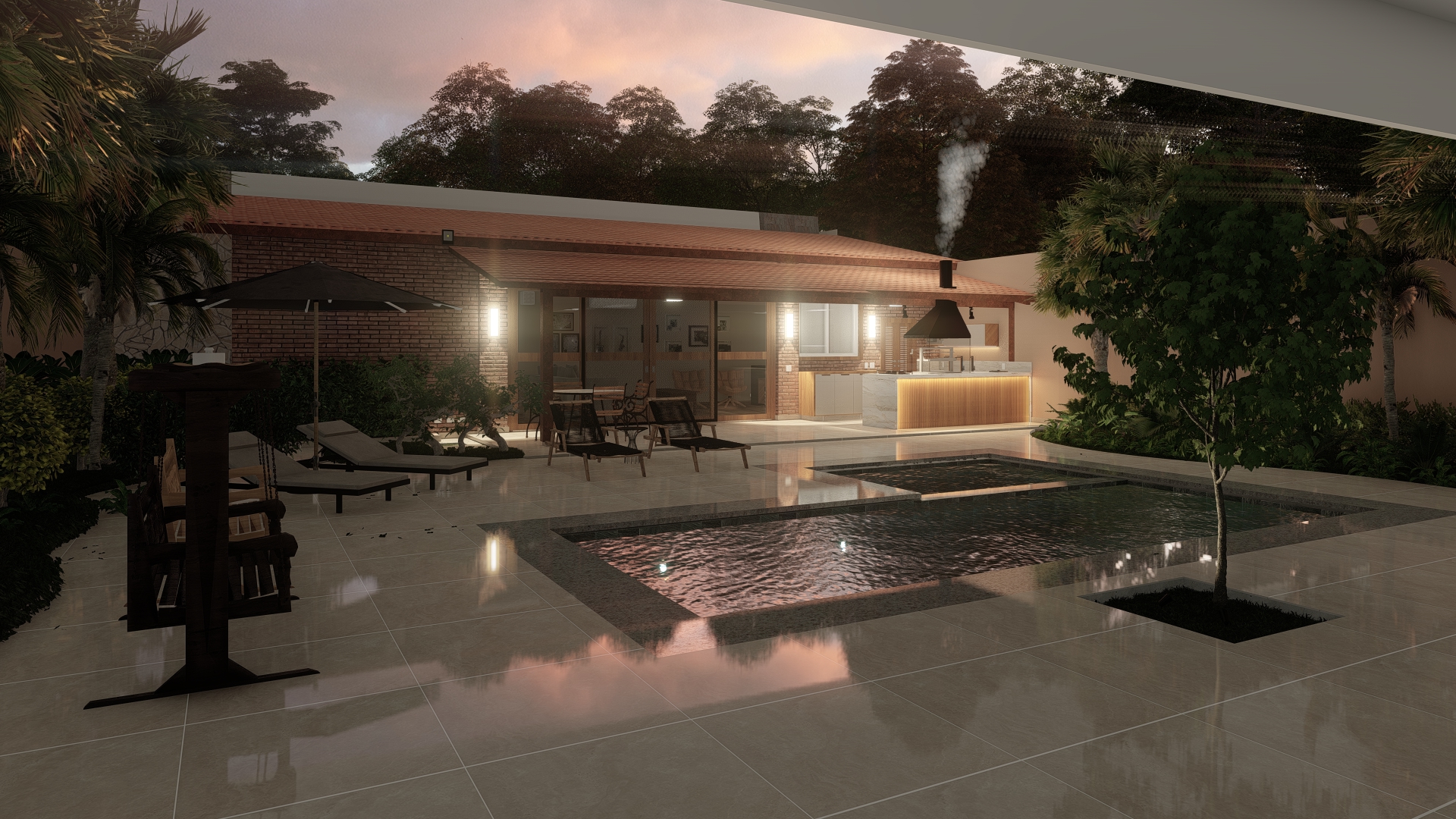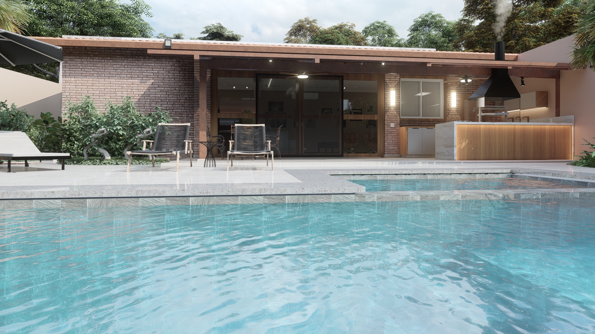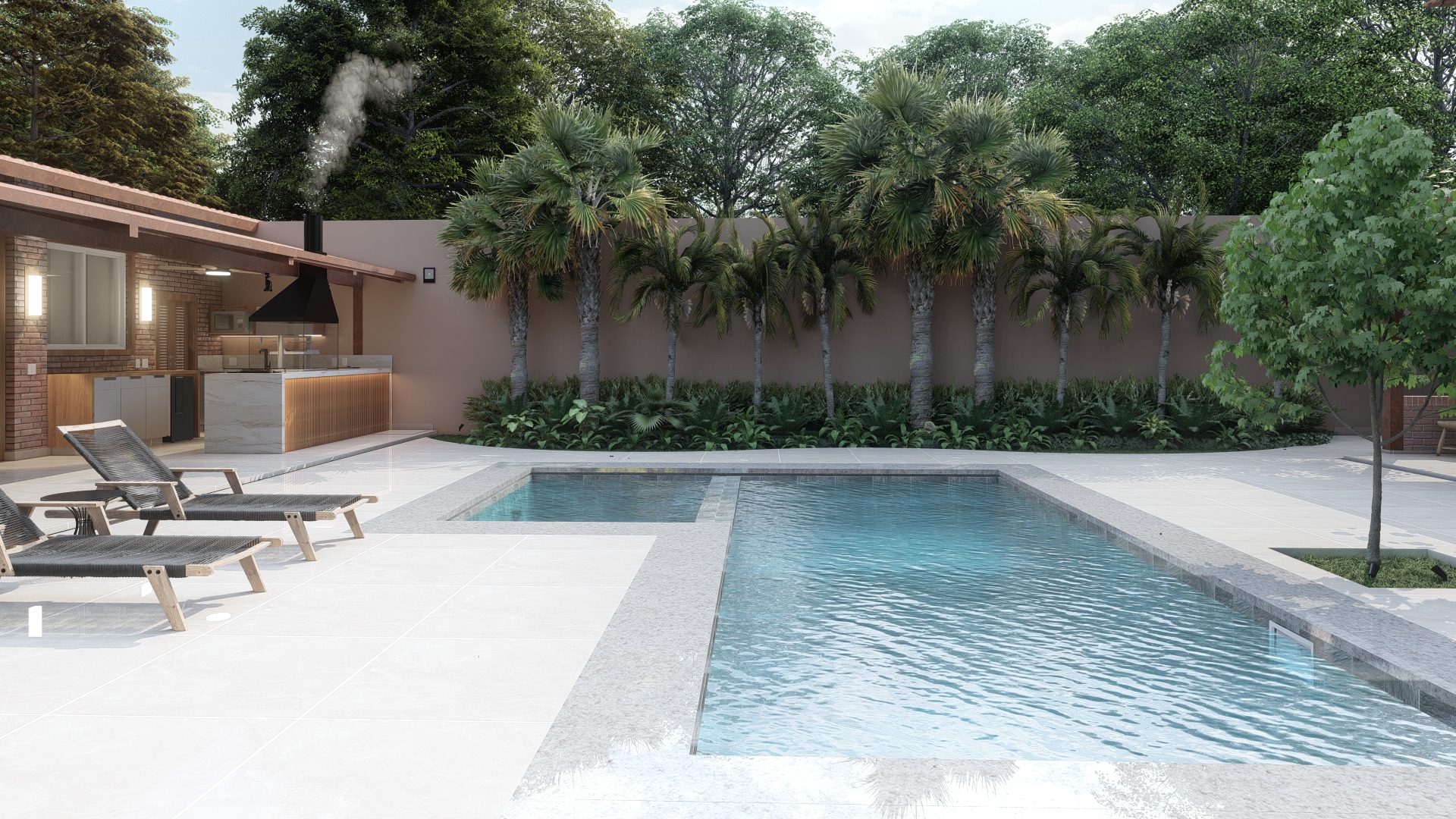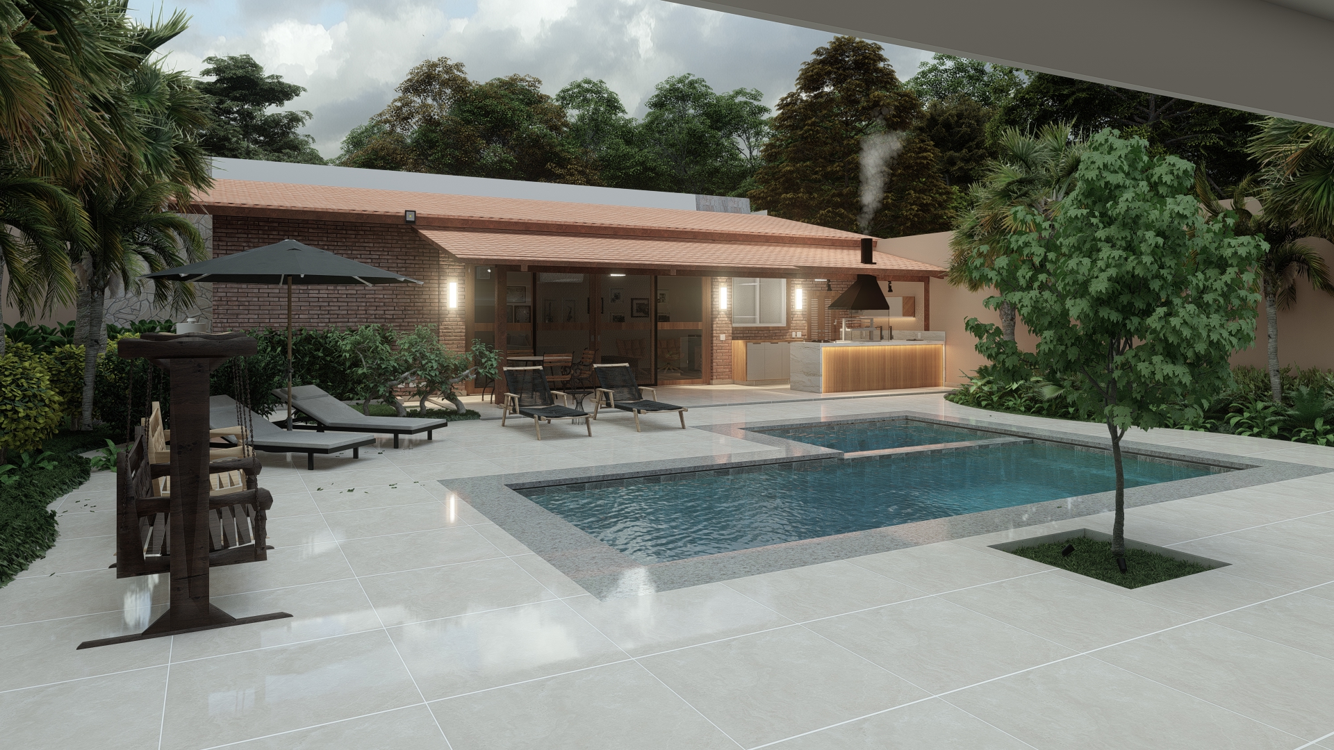 O projeto de reforma da área de lazer teve como objetivo transformar os espaços externos — piscina, área gourmet e salão — em ambientes mais modernos, funcionais e sofisticados, atendendo aos desejos do cliente de revitalizar e valorizar o ambiente.