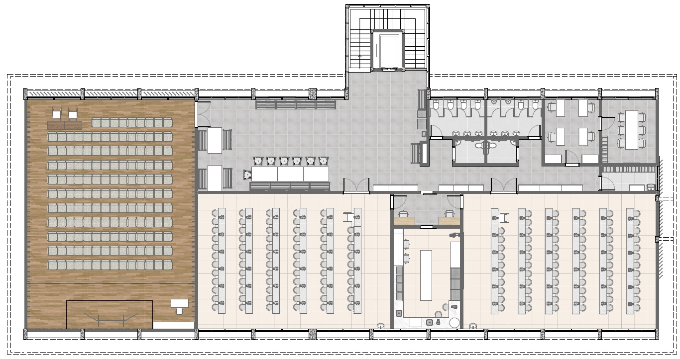 O projeto da renovação da faculdade de medicina foi pensado como uma modernização abrangente dos espaços funcionais e de convivência. A proposta combina linhas contemporâneas, iluminação natural e a integração do ambiente acadêmico com áreas que promovem a interação social e o bem-estar dos estudantes e professores.