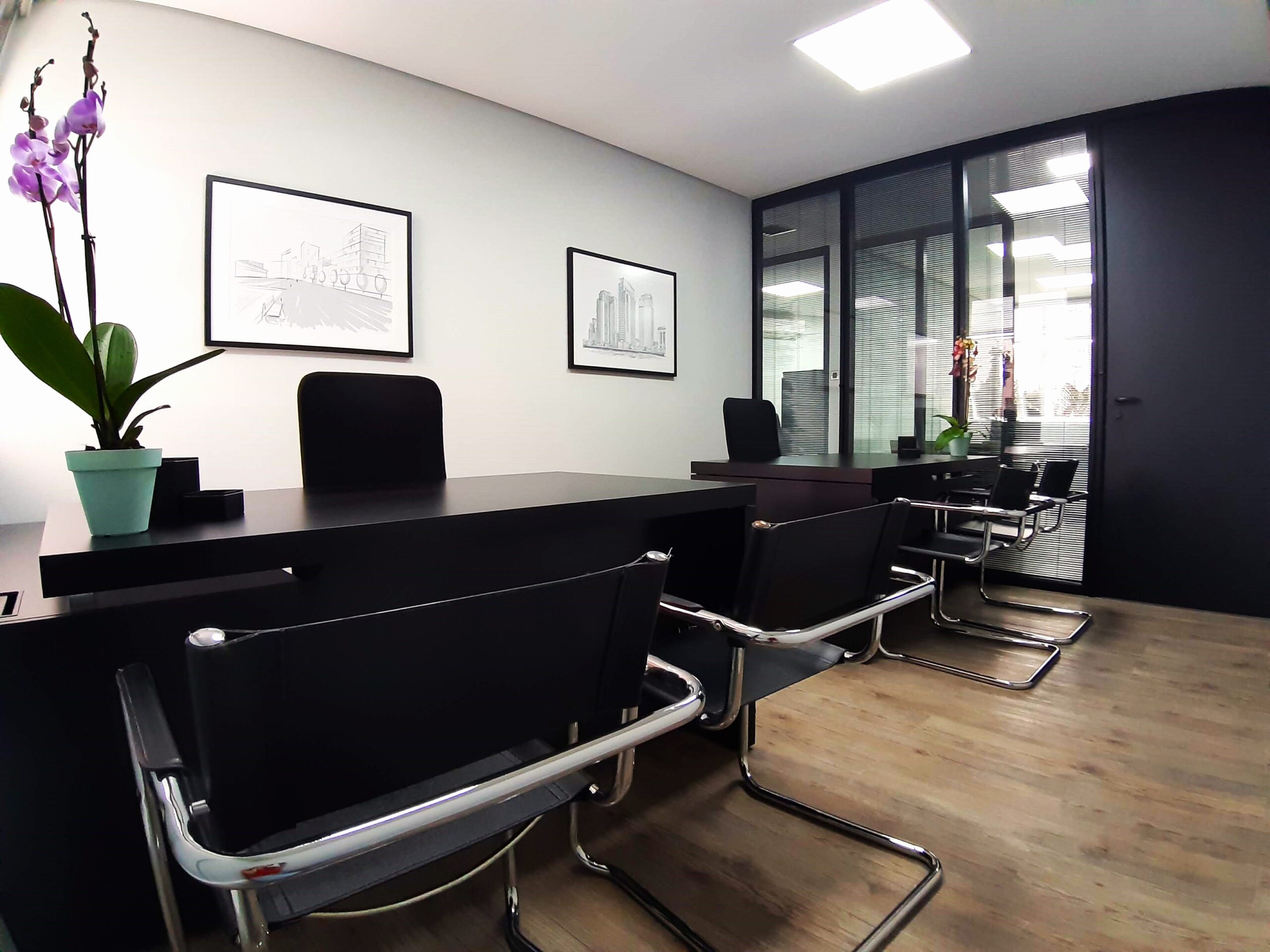 O projeto propõe um ambiente corporativo unificado pelo uso predominante de mobiliários pretos que conferem autoridade aos espaços e contrasta com as paredes claras que ampliam visualmente o ambiente e proporcionam uma atmosfera profissional.